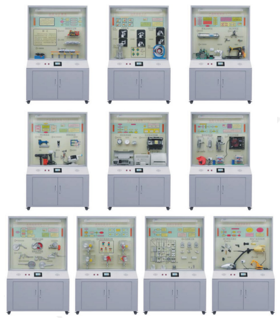 5、柜頂部裝有照明日光燈,柜背設(shè)有對開門,有利維護(hù)設(shè)備和方便維修。柜下部設(shè)有柜箱,方便存放單個(gè)模型、實(shí)驗(yàn)箱及相關(guān)實(shí)驗(yàn)文檔。柜底裝有萬向輪,方便移動(dòng),符合人機(jī)工程要求。