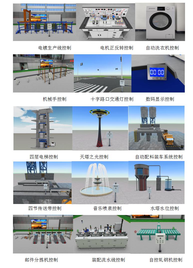實驗支持:電機星三角啟動、洗衣機控制、機械手控制、音樂噴泉控制、天塔之光、數字顯示、十字路口交通燈、電鍍生產線等。